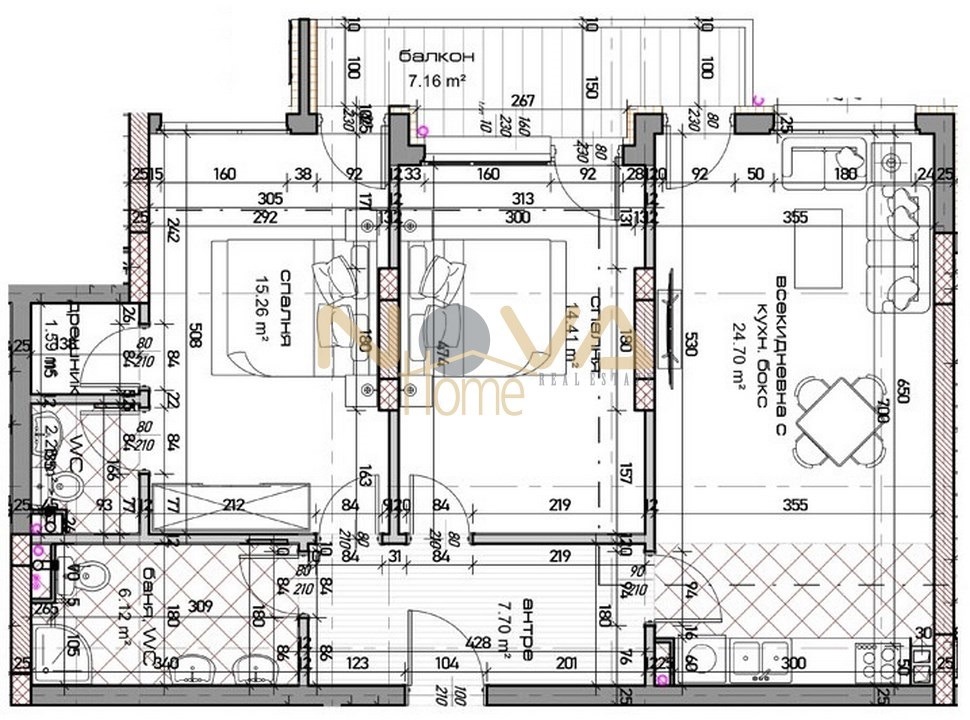 Нова Хоум съдейства на своите клиенти до нотариалното изповядване на сделката, за отпускане на кредит с преференциални условия към всички водещи банки на пазара, както и за ремонтни и довършителни дейности /завършване до ключ/ на преференциални цени.