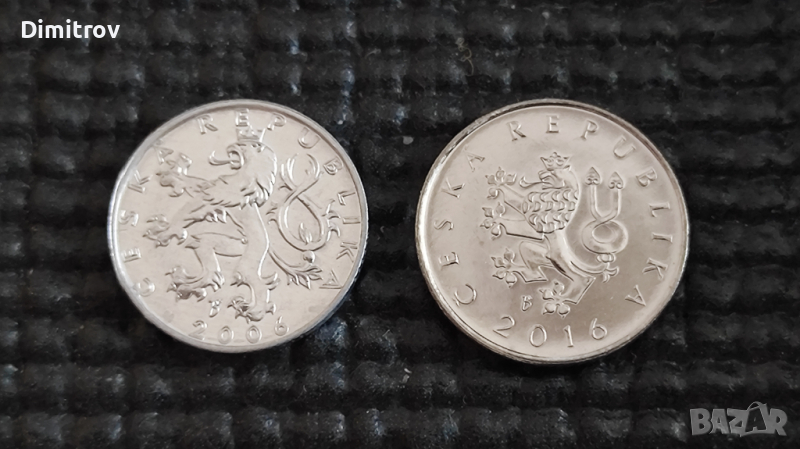 Лот от две съвременни чешки разменни монети - 1 крона (2016) и 50 халера (2006). Почти нециркулирали, като нови. Отлични монети в качество гланц, с красива хералдика. Подходящи за колекция.