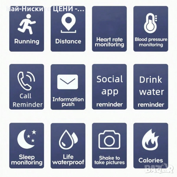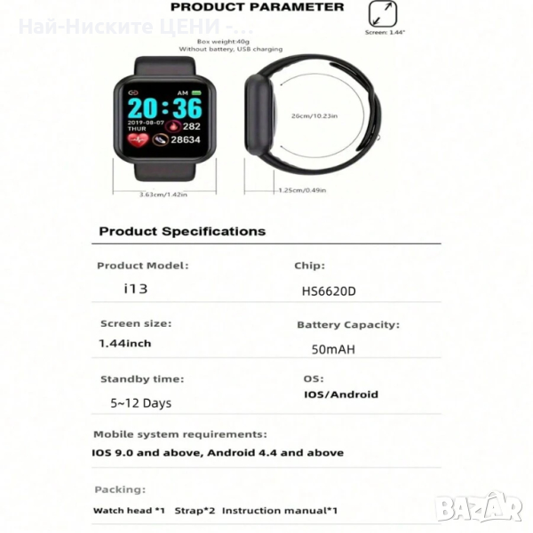 Смарт часовник i13 Fit Pro е с много функции: Часовник с будилник, Напомняне за повикване, Измервания на калории, Дата, Нотификация за входящи повиквания, Измерване на пулс, Съобщения, Крачкомер, Наблюдение на съня, Уведомяване за SMS и други. Bluetooth версия: BT 4.0 или по-нова. Съвместим: IOS Android 4.4 или по-нова версия, iOS 8.0 или по-нова версия. Каишката е направена от мек силикон, тя се състои от две части, тези части се захващат от двете страни на часовника.Цвят: Черен + Сребро-Водоустойчив-Монитор на сърдечната ритъм: Да-Монитор за кръвно налягане: Да-Монитор за кръвен кислород: Да-Монитор на съня: Да-Multi-спорт режими-Крачкомер: Да-Повикване или напомняне за съобщение: Да-Уведомление за Facebook, Twitter, Wechat, WhatsApp и др.-Автоматичен светлинен екран: Да-Аларма за поддръжка, календар, напомняне, дистанционно управление на камерата-Сензор G-сензор, Сензор за пулс.-Време при активно използване: Около 5 дни.-Време за зареждане: Около 2 часа.