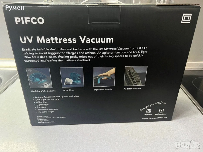 UV прахосмукачка против акари Pifco. Прахосмукачка за легло и мека мебел против акари, чисто нова неизползвана.
