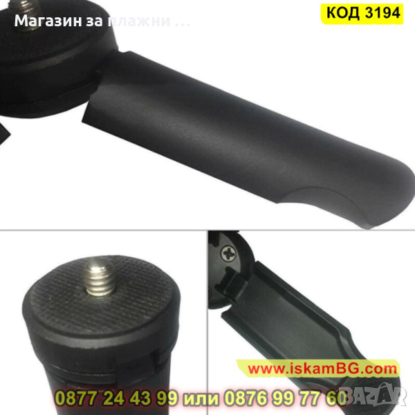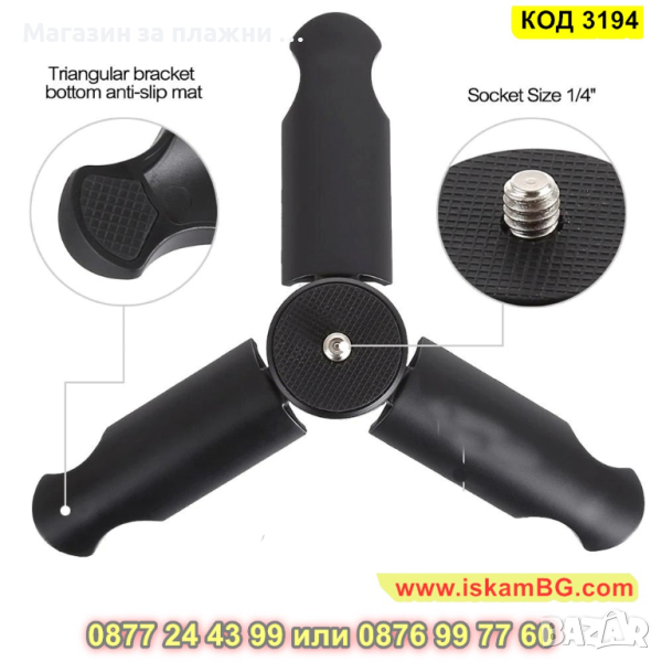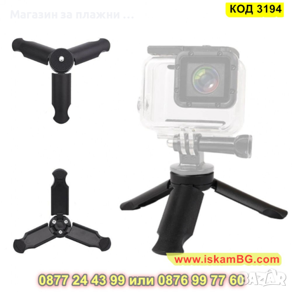 Универсален статив, подходящ за употреба с фотоапарати, екшън камери и смартфони. Включени в комплекта стойка за смартфон и стойка за GoPro Action камера. Подходящ за DSLR фотоапарати, видеокамери, Action камери, смартфони с максимално тегло до 2 кг.