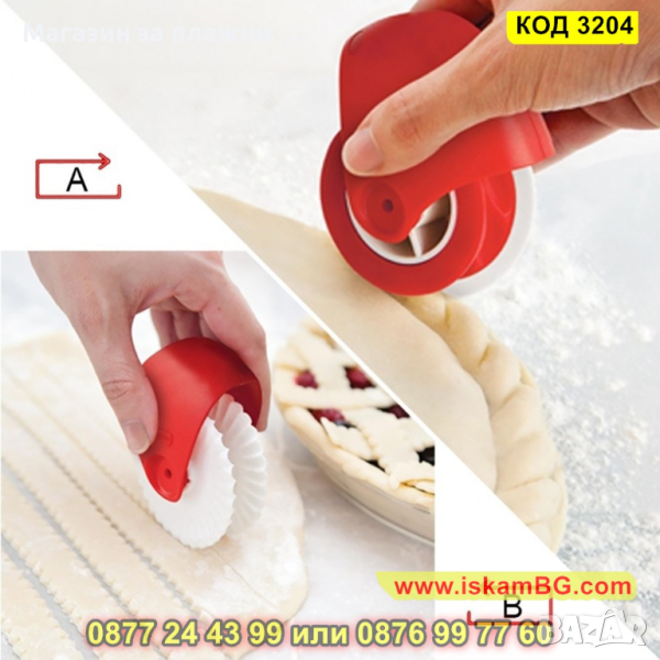 Купете този страхотен кухненски помощник - валяк за рязане и декориране на тесто, които ще бъде от истинска полза на всяка домакиня, която обича да приготвя различни тестени вкуснотии. Идеален за приготвяне на пай и декорация на тесто. Този валяк можете да режете тестото на мрежа и да създаде много оригинално тестено изделие. С ролера можете да разрежете идеални ивици за плодова пита с ширина 2 см.