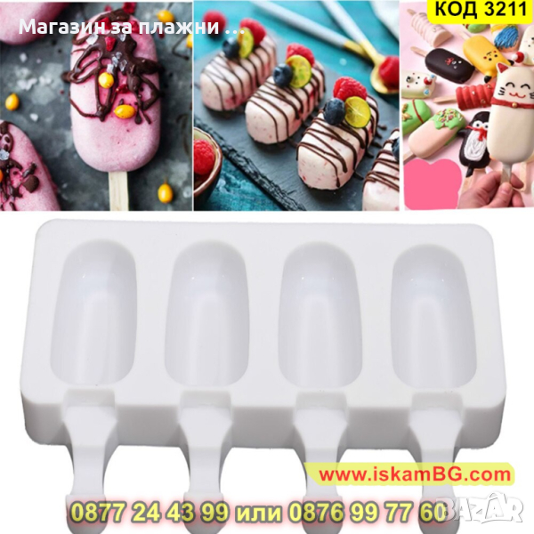 Силиконовата форма е за 4 броя сладолед с три еднакви формички - Класически Ескимо.