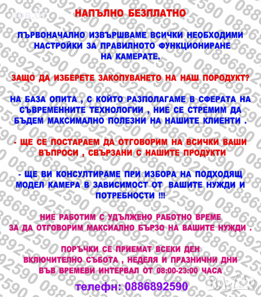 СПЕЦИАЛНО ЗА НАШИТЕ КЛИЕНТИ СМЕ ПОДГОТВИЛИ БОНУС ПРИ ПОКУПКА НА КАМЕРА: БЕЗПЛАТНО ДОПЪЛНИТЕЛНО ОБУРУДВАНЕ :