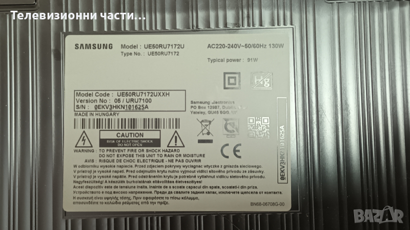 Samsung UE50RU7172U със счупен екран-BN41-02703A BN94-14756K/BN44-00932Q/AOT_50_NU710/CY-NN050HGAV1V