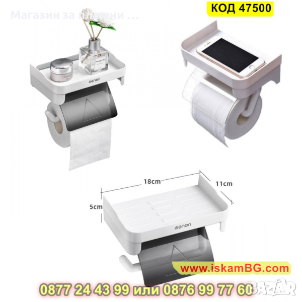 Поставка за тоалетна хартия с рафт за телефон - КОД 47500