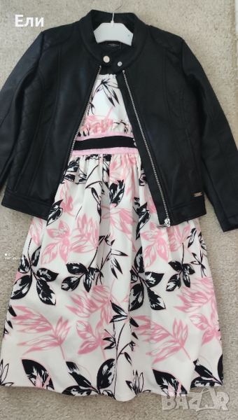 Красива и елегантна рокля. Много приятна материя и цветове. За девойка на 6,7 и 8 години. Обличана 2-3 пъти. Закупена на двойна цена. Като нова!