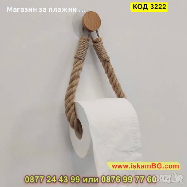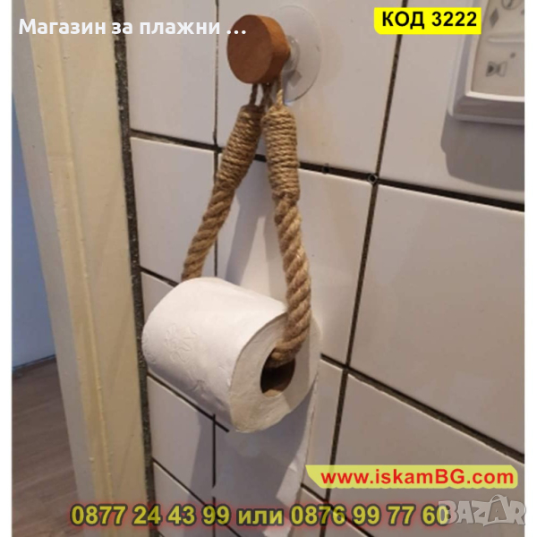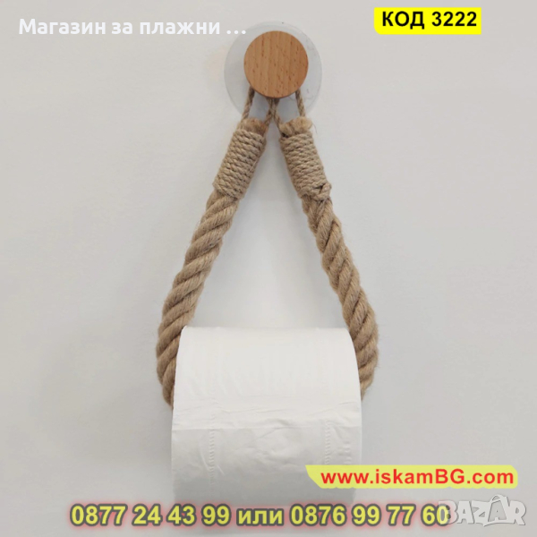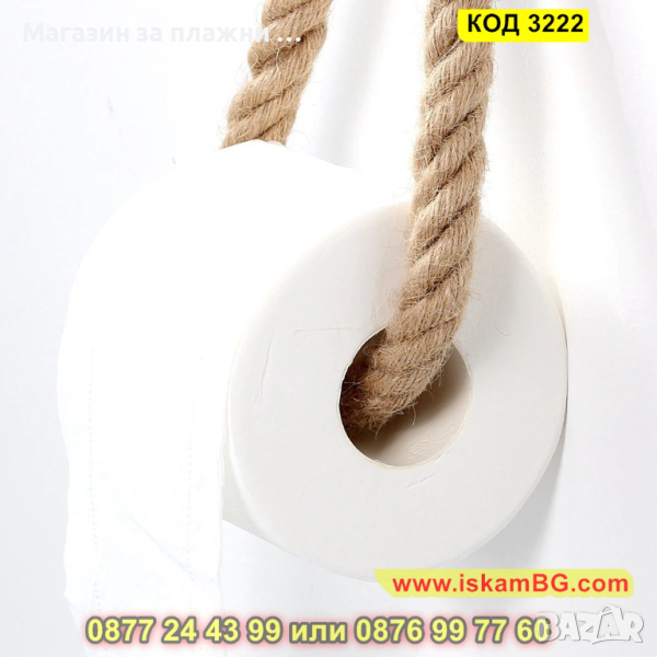 Винтидж аксесоар за баня - държач за тоалетна хъртия с въже - КОД 3222