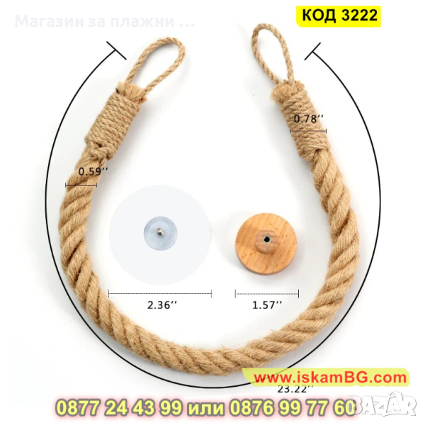 Материал: дърво, коноп, силиконова вендуза