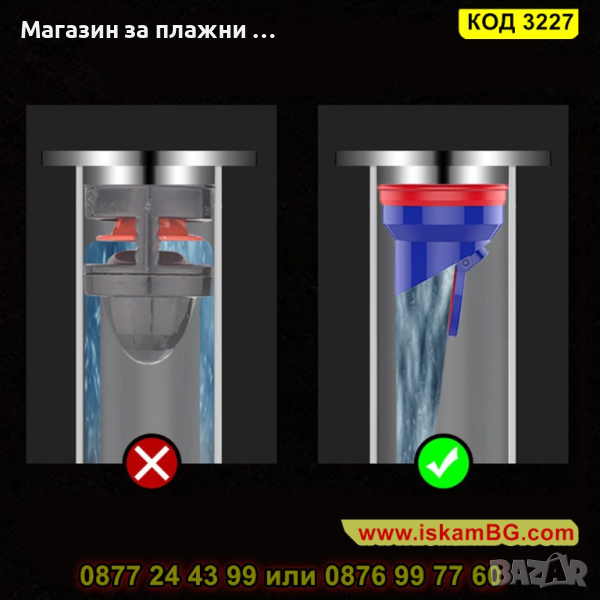 Клапата за сифон се отваря само когато водата достигне до нея. Тя е плътно затворена и блокира неприятните миризми от канала, насекомите и предотвратява преливане!