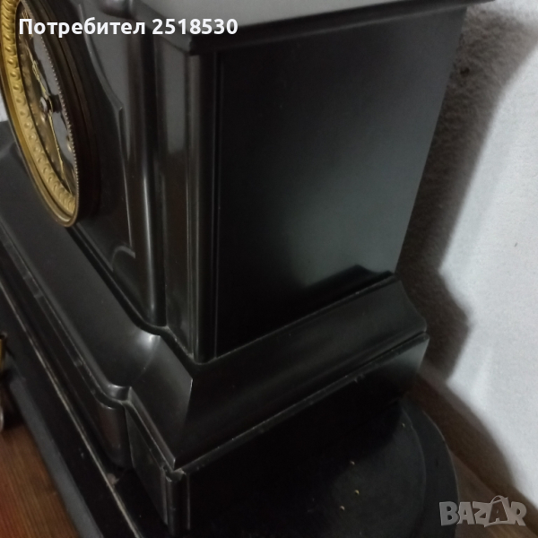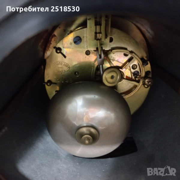 Френски мраморен каминен часовник "Bernard Lyon a Paris"с дървена оригинална поставка.Чист и смазан механизъм,работи и звъни,налично ключе.Часовника е от края на 19 век.Без стъкло на циферблата.Часовника ще бъде старателно опакован и доставен до удобен за Вас адрес.