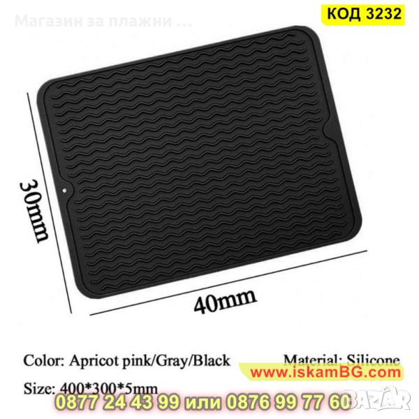 Тази подложка за изцеждане на съдове е направена от мек силикон, който не дере и не се хлизга по кухненския ви плот. Освен това, благодарение на фината си изработка и качествения си материал, изглежда чудесно, почиства се удобно и не се захабява лесно и бързо.