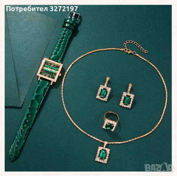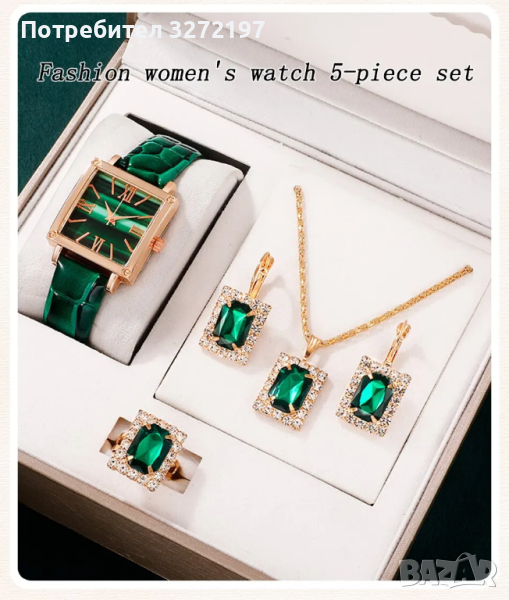 Комплект Дамски моден кварцов часовник+бижута,5 артикула