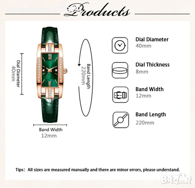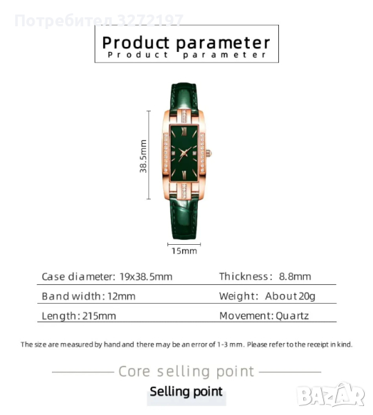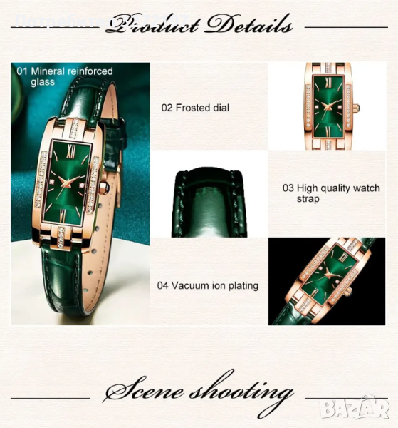 • Квадратна форма на циферблата: Квадратната форма на циферблата на този часовник добавя нотка на изтънченост и модерност към всяко облекло.