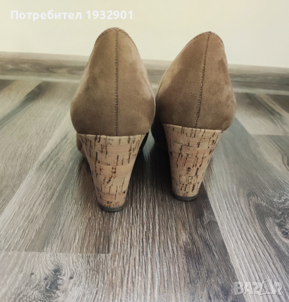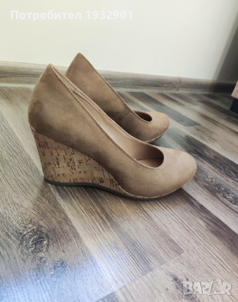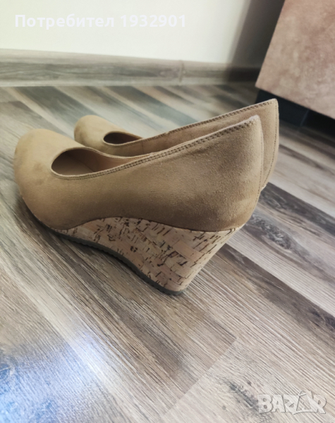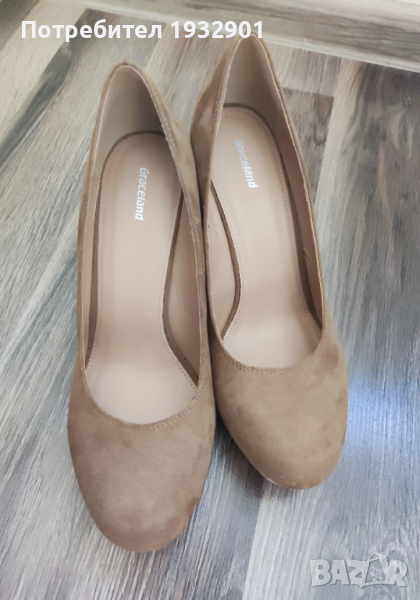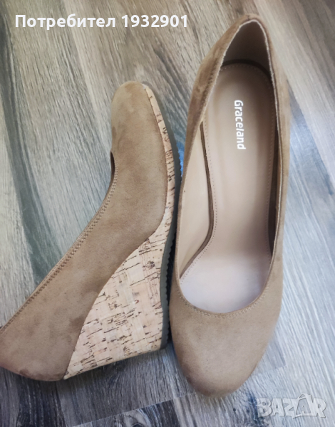 Продавам нови обувки на платформа Graceland,цвят каки, номер 40, дължина на стелката 25 см. Предната част е с височина 2 см, платформата отзад е 8 см. Материал-велур;платформа-корк.