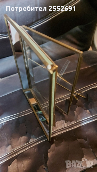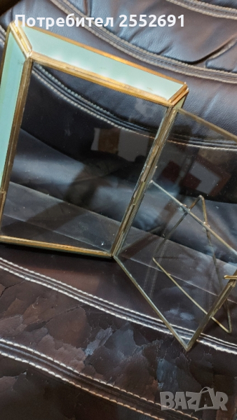 Ръчно изработена рамка от метал и стъкло. Огледални стени. Отваряща се задна част. Размери- 21,5/16,5/3см.