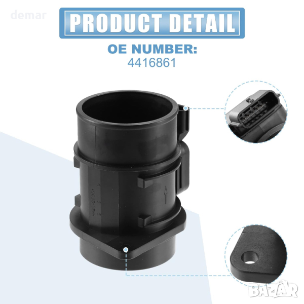 Този универсален автомобилен сензор за въздушен поток е проектиран да пасва на широка гама превозни средства, включително Nissan Qashqai и Qashqai +2 I MK I (1.5 dCi, 1.6 dCi, 1.6 dCi AWD от 2007-2013) SUV, както и различни Opel Movano и Модели Vivaro от 1998 г. до 2017 г. и Vauxhall Movano MK I 2.5 CDTI (1998-2010 г.) в конфигурации автобус, кутия и платформа. С OE номер 4416861, този сензор за масов въздушен поток (MAF), който не е OEM, е от съществено значение за осигуряване на подходяща смес от въздух и гориво в двигателя на вашия автомобил. Изключително важно е да проверите съвместимостта на автомобила, като използвате информацията за годината/марката/модела, преди да купите. Сензорът играе решаваща роля за ефективността и производителността на двигателя и се препоръчва да почистите системата на въздушния двигател и да смените сензора, ако е необходимо за оптимална работа. Пакетът включва един сензор за измерване на масовия въздушен поток, предлагащ лесно решение за поддръжка на системата за всмукване на въздух на вашия автомобил.