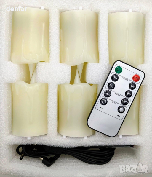 6 броя восъчни акумулаторни LED свещи топло бели, дистанционно управление, за домашен декор
