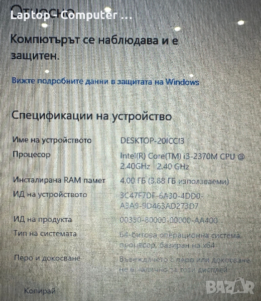 Продавам добър четириядрен лаптоп който e идеален за онлайн обучение, гледане на филми, сърфиране в интернет, за работа и други. С чисто нов хард диск на тошиба 500GB стария е вземато за запазване на данните и е инсталиран с Windows 10 64bit с всички нужни програми и драйвери и напълно готов за използване върви със зарядно, има леки козметични следи от използването освен това няма никакви забележки и батерията държи около 3:30 часа
