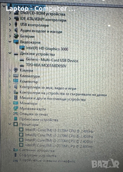 Процесор: intel Core i3 - 2370М ( 4 x 2.40GHz ) 2 физически и 2 допълнителни ядра