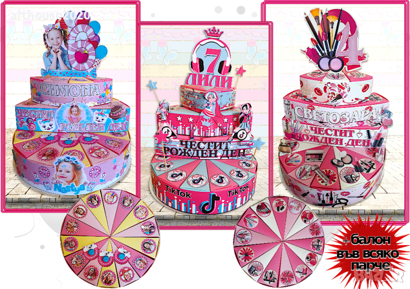 Картонени торти и парти артикули за момичета-авторски дизайн,фотопечат