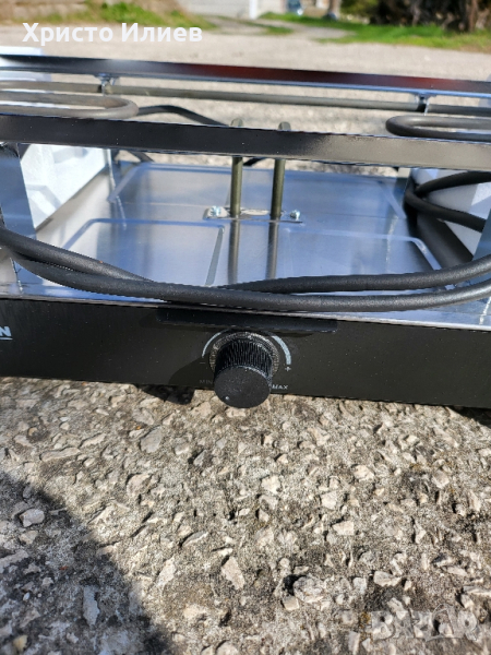 Има леки следи от употреба по камъка. Приложени са реални снимки и може да се види. В оригинална опаковка.Уред за рецепти Severin с мощност 1400 W с подвижен естествен камък за готвене. Обща повърхност за готвене 46 x 23 cm.Естественият камък поддържа топлината много добре: скарите се пекат леко без добавяне на мазнина и остават крехки и сочни.ЛЕСЕН ЗА ИЗПОЛЗВАНЕ - Регулируем термостат чрез въртящо се копче със светлинен индикатор. Включва 8 тигана с незалепващо покритие за лесно изваждане на хранатаОпростен и елегантен черен дизайн Размери на продукта (Д x Ш x В): 46,5 x 40 x 14,2 cm Тегло: 7,26 kg Захранващ кабел: 1,4 m.Какво по-добро от приятелска вечеря с приятели или семейство? Този раклет на Severin е идеалният съюзник. Благодарение на своите 8 тигана с незалепващо покритие, насладете се на любимите си хора на добра храна. Оборудван с естествен камък за готвене, последният запазва топлината много добре и скарите се пекат нежно, оставайки крехки и сочни. Неговият регулируем термостат с контролна лампа ви позволява да регулирате температурата на готвене по ваш вкус за перфектен вкус.7