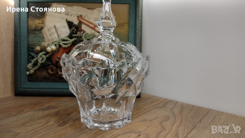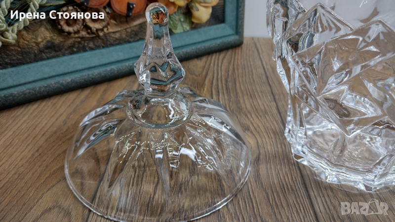Голяма захарница или бонбониера с капак, кристалин. → Обява 44872928