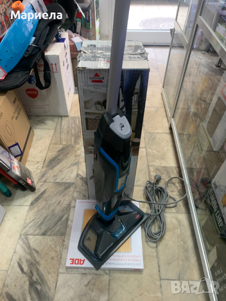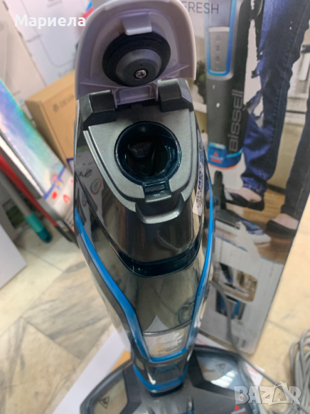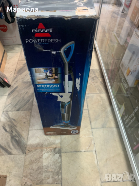 Парочистачката е закупена от разпродажба в Германия .Мостра със забележки по опаковката , фини дразкотини по корпуса и липсваща четка SpotBOOST .BISSELL PowerFresh Deluxe Steam Mop е парочистачка за твърди повърхности, която използва естествената сила на парата, за да почиства и дезинфекцира вашите подове лесно, елиминирайки 99,9% от микробите и бактериите, когато се използва според указанията.Електронно променливо управление на парата за автоматично управление на изхода на пара, за да отговаря на различните повърхности в дома.