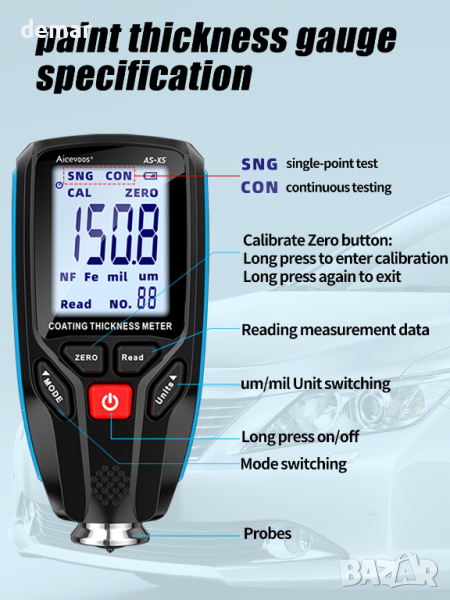 Aicevoos X5 Уред за измерване дебелината на боята на автомобили
