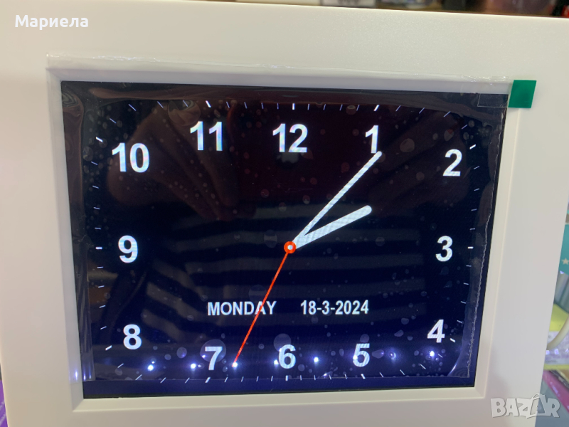 Фоторамката е закупена от Германия Чисто нова отворена за снимките .Фоторамката е с размери : 22х17,5х2,5 см. / 8 инча .Фоторамката има вграден календар .Показва актуални час и дата .Възпроизвежда звук и изображения или видео клипове .Можете да избирате между няколко варианта на часовника .Можете да направите до 5 аларми и 4 медисцински напомняния за приемане на лекарства .Имате и избор на език (няма български език ) .Можете да възпроизвеждате файлове от SD карта , флашка или друг USB носител .Можете да свържете и слушалки или високоговорители към нея .Зархранкането е в комплекта .Резолюция : 1024х768 .