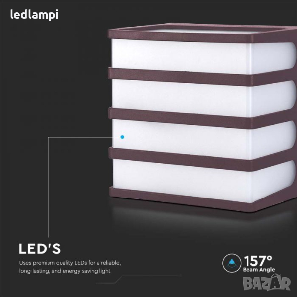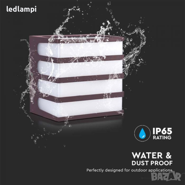 LED Стенен Осветител 8W Квадрат Тъмно Кафяв IP65
