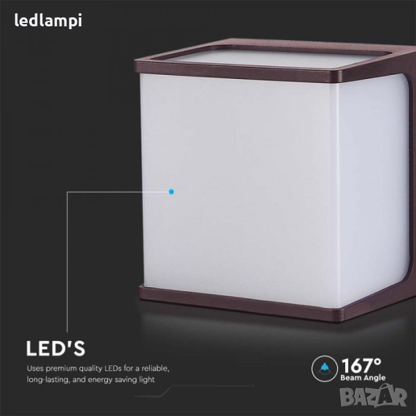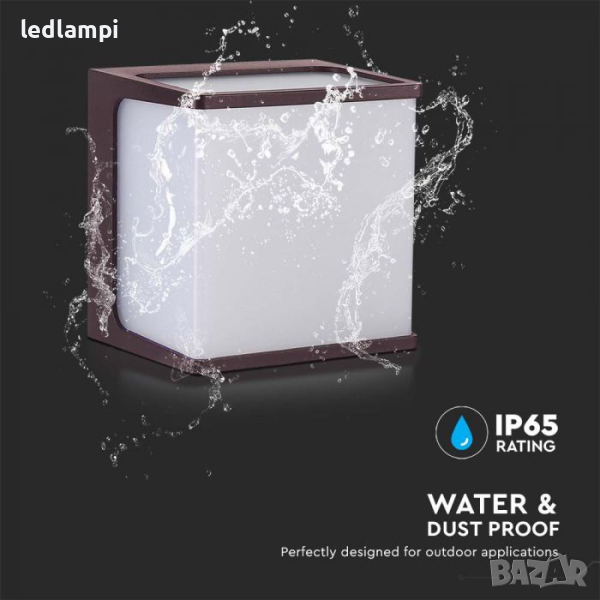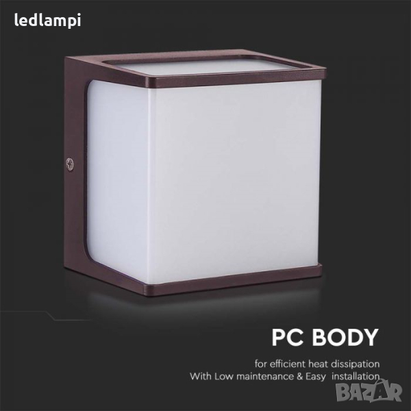 LED Стенен Осветител 8W Квадрат Тъмно Кафяв IP65