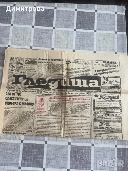 6. Вестник “Гледища” - Бр. 237/ 12.12.1994 г. - 5 лв./2.56 €.