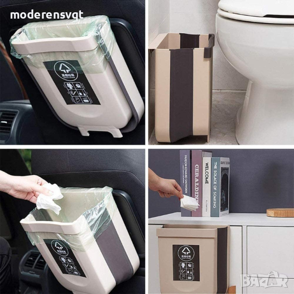Кухнята е помещение, където винаги е необходим още един кош, ни никога мястото не е достатъчно. Този сгъваем кош може да поставите на най-удобното за вас място и да използвате само, когато ви е необходим, след което можете да го сгънете и приберете. Снабден е с подвижна част, която фиксира торбичката за боклук и може да се използва за да придвижвате отпадъците от плота към кошчето лесно, без да се цапате. Подходящ е за поставяне на вратички (на шкаф) до 2.2см.