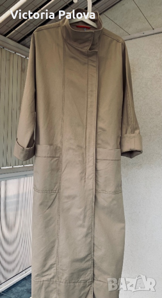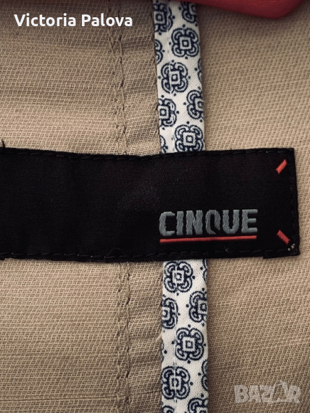 Ginque- е истинска италианска мода от немски произход . Скъпа качествена марка, идеална кройка, логото на бранда, актуален цвят ( пясък), комфорт и удобство, прекрасен състав ( памук, лен, еластан - 68%,31%,1%). Роклята е дълга 120см, права кройка, ГО - 61см, може да се носи и като летен тренч разкопчан с панталон , клин , пола.