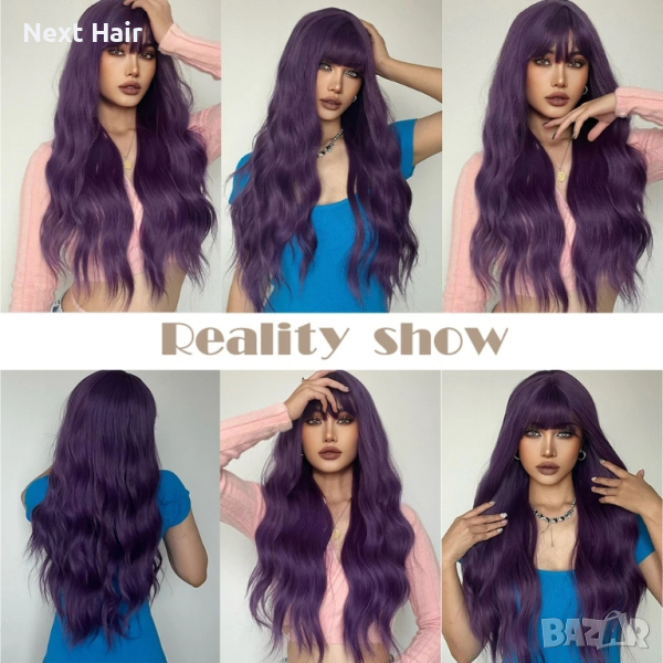 Лилава аниме къдрава перука с бретон → Обява 44879274