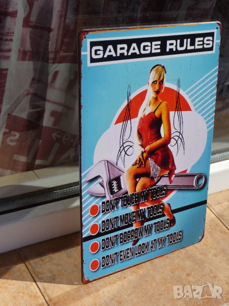 Метална ламаринена табела - Garage rules.