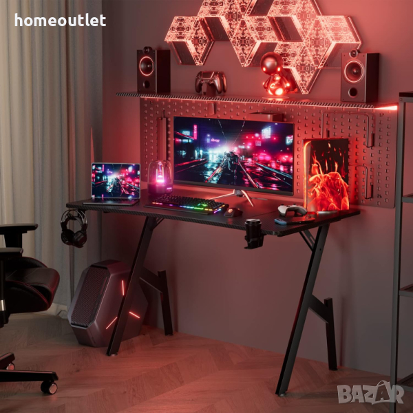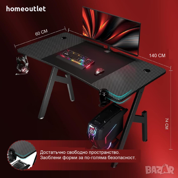 Компютърното бюро има извит дизайн и е покрито с висококачествени въглеродни влакна, което осигурява устойчива на надраскване и издръжлива повърхност.
