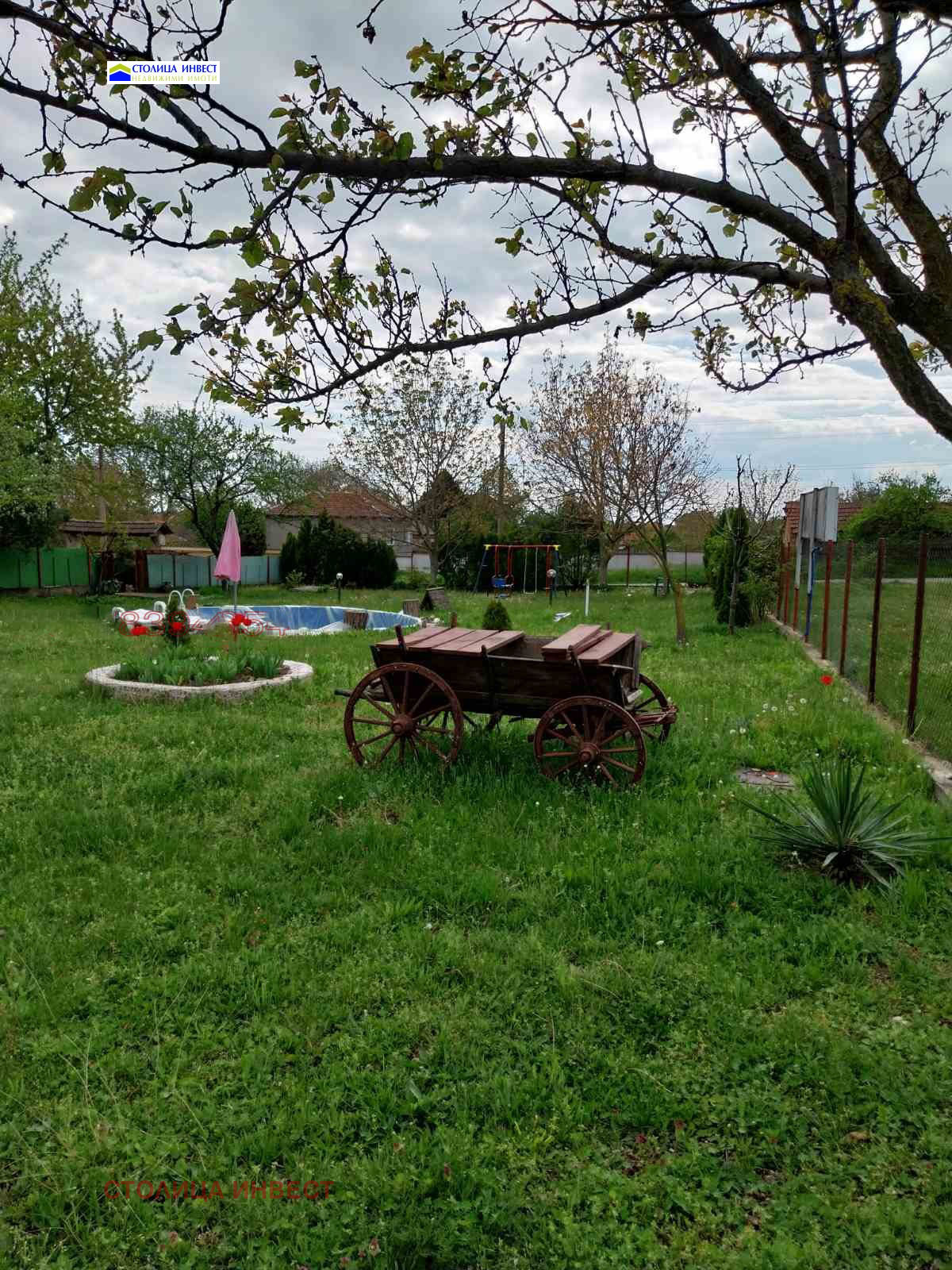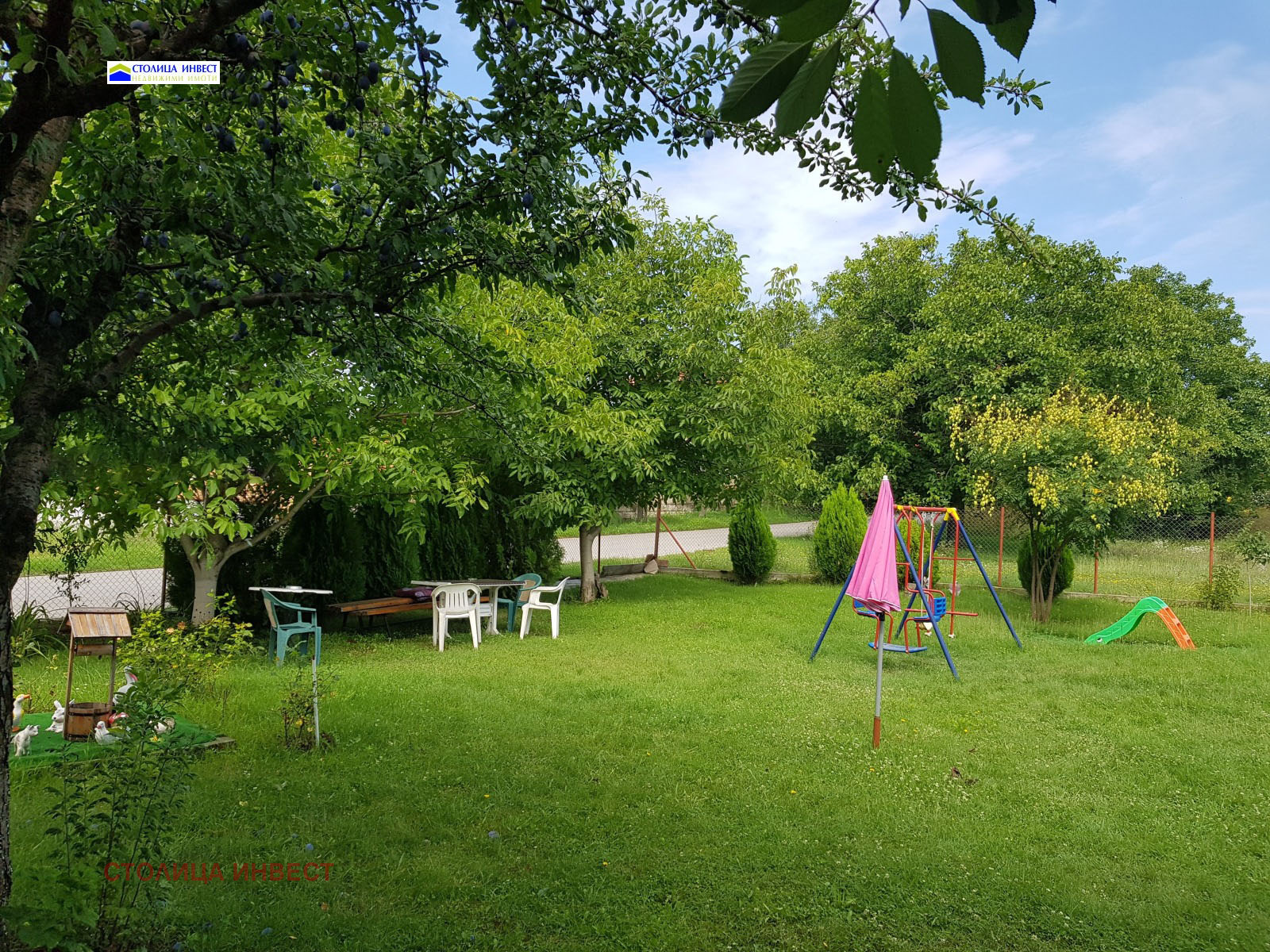 2 етаж- 5 двойни стаи всяка с баня и тоалетна, килер/складово помещение/. Къщата е много добре поддържана, с PVC дограма, врати, сменена ВиК инсталация и трифазен ток. Дворът е много добре поддържан, с басейн, детска площадка и множество битови кътове за отдих и релакс, а отоплението с камина с радиатори. Много добър имот за закупуване, както за живеене, така и за инвестиция, тъй като може да се използва за къща за гости, защото разполага с рецепция и ресторант!