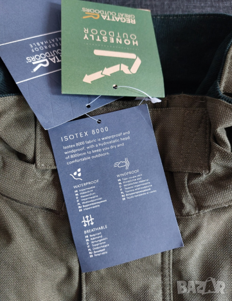 Ново оригинално, стилно мъжко яке Regatta. Размер S, гръдна обиколка 94-96,5. Якето е водонепромукаемо с мембрана Isotex 8000mm. Подходящо за пролет, есен, мека зима. Има скрита качулка в яката.