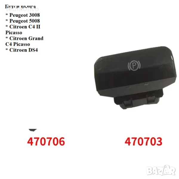 **Ключови думи:** Електронен превключвател, Ръчна спирачка, Peugeot, Citroen, DS, 470703, 470706