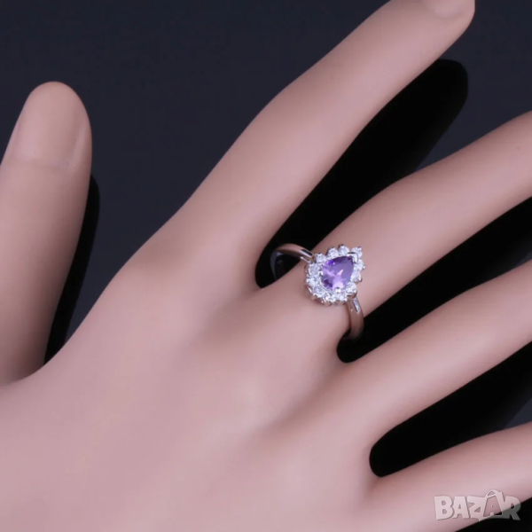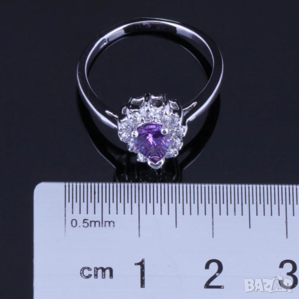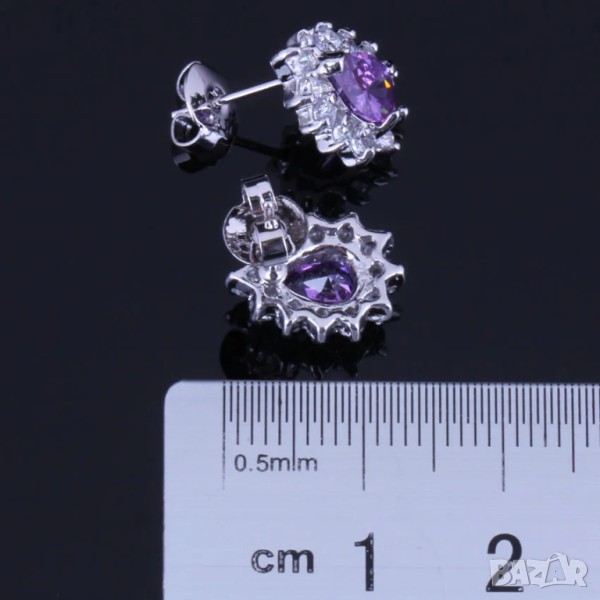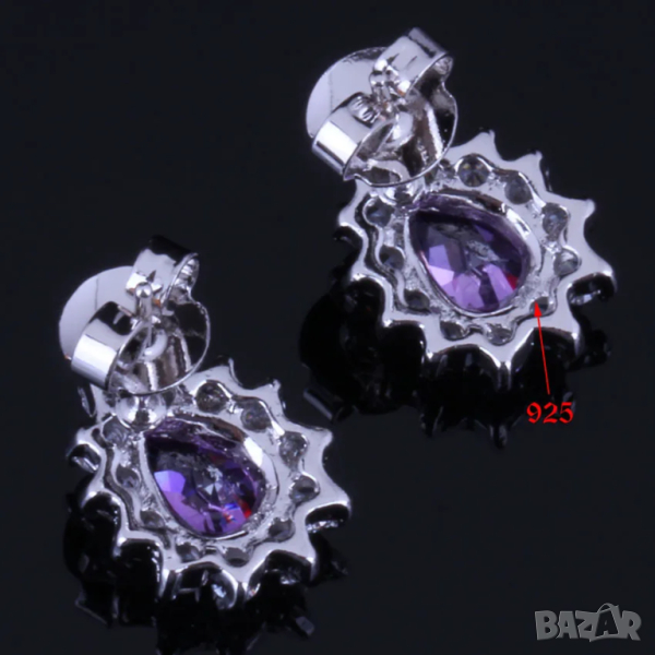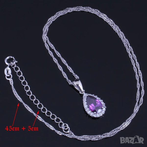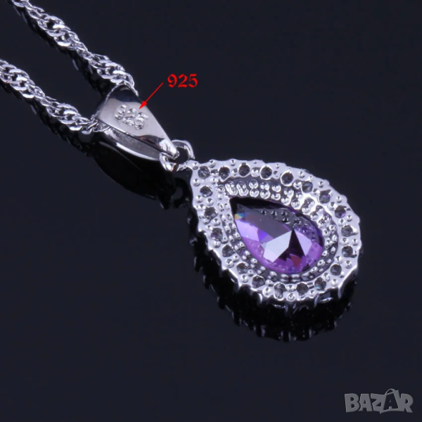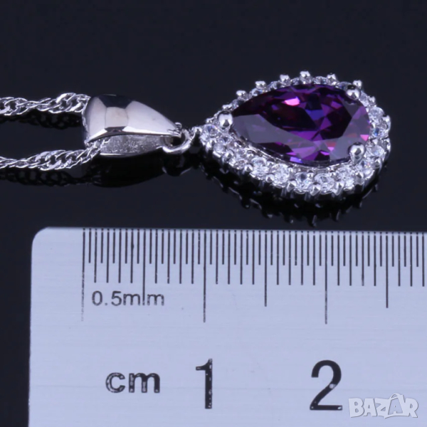 Сребърен комплект със сапфири и искрящи кристали → Обява 44886165