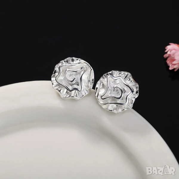 Сребърен комплект рози състоящ се от пръстен размер 9, колие, обици и гривна.