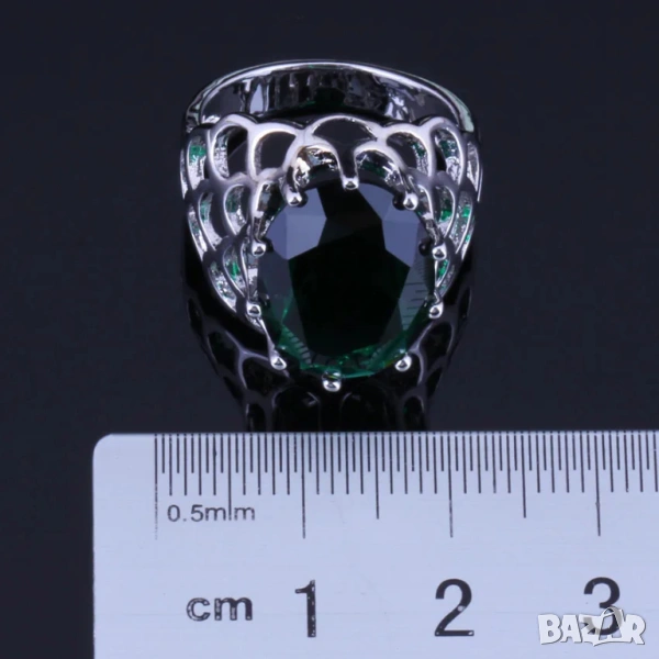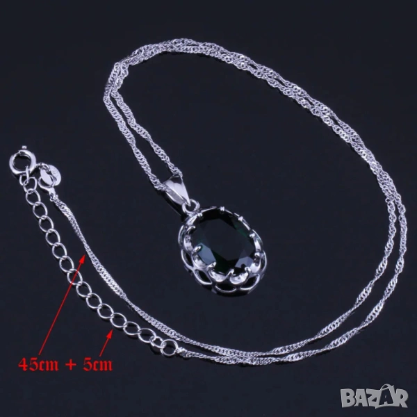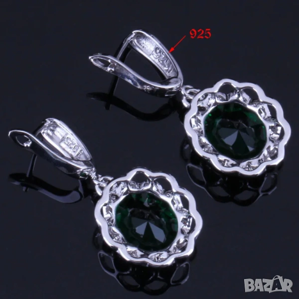 със смарагди, състоящ се от пръстен размер 10, колие и обици. цена 24,99 евро