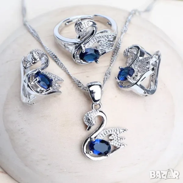 лебеди със сапфири в подаръчна кутийка.Пръстенът е универсален размер. цена 24.99 евро