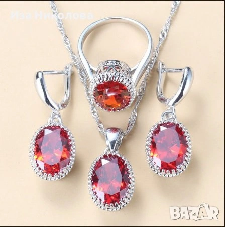 с рубини състоящ се от колие, обици и пръстен размер 9 или 10 според вашето желание. цена 24,99 евро