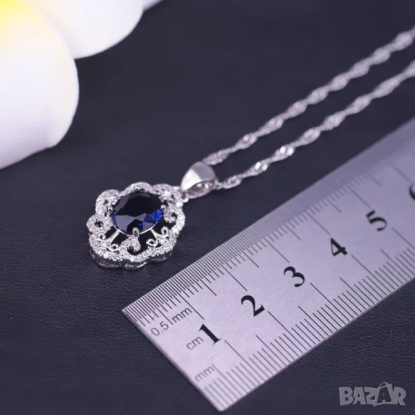 Сребърен комплект с рубини състоящ се от колие с дължина 50см, пръстен размер 10 и обици, всичко това в подаръчна кутийка.Наличен е само комплекта от снимка 1 с рубини.
