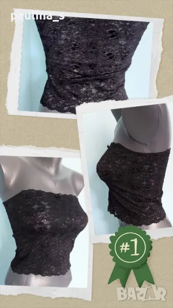 1️⃣. Колаж / S / L - Дантелено бюстие България / унисайз. Цената е крайна, без пазарлъци 19,99лв / 10 евро. Еластично бюстие от черна дантела, класика в жанра, без презрамки. Една бройка е, без дефекти, става за посочените размери.