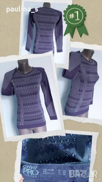 2️⃣. Колаж / L / 3XL / "Crivit"Pro. Цената е крайна, без пазарлъци 29,99лв /15 евро. Лилаво - синьо / Маркова спортна блуза / термо бельо със стабилизиращ гръбначния стълб ефект. Като нова. Ръкавите са реглан, започват от бието. Като нова е, без дефекти и етикет.