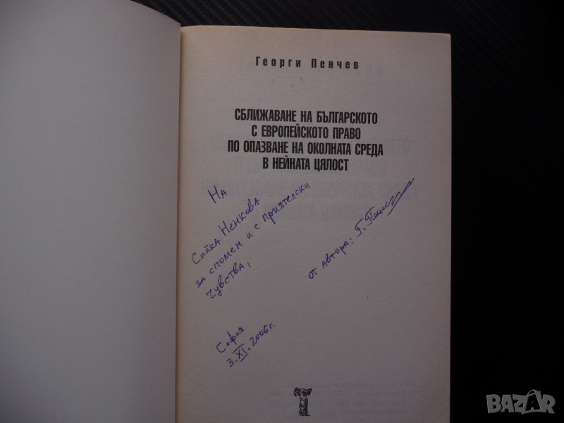 Сближаване на българското с европейското право по опазване на околната среда в нейната цялост - Георги Пенчев. С автограф.